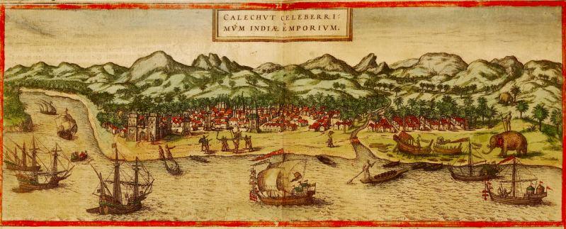 Figuur 6 De haven van Kozhikode (voorheen Calicut) in 1572